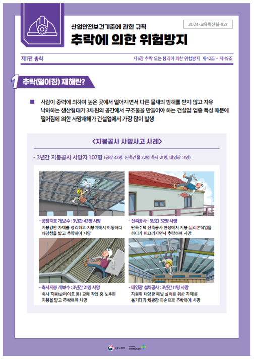 산업안전보건기준에 관한 규칙 - 추락에 의한 위험방지 작성자관리자 등록일 25-07-07 조회243회 본문 산업안전보건기준에 관한 규칙 - 추락에 의한 위험방지 첨부파일 [2024-교육혁신실-827] [기준규칙] 총칙_추락에 의한 위험방지.pdf (6.0M) 산업안전보건기준에 관한 규칙 - 안전난간 및 지붕 위험방지 추락에 의한 사고 예방대책 목록