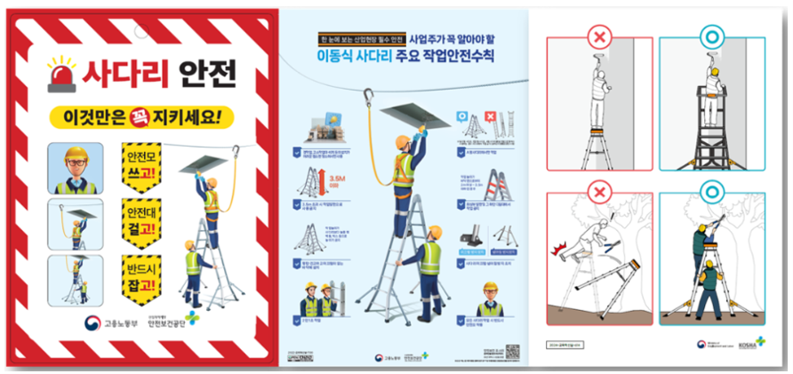 - 사다리에 올라 과도하게 몸을 뻗지 않도록 하고, 사다리가 전도되지 않도록 아웃트리거를 설치할 것