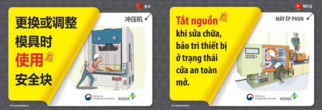 외국인근로자 교육 자료 (프레스, 사출성형기, 혼합기 등) - 8개국 작성자관리자 등록일 25-10-27 조회202회 본문 외국인근로자 교육 자료 (프레스, 사출성형기, 혼합기 등) - 8개국 첨부파일 외국인교육자료_프레스.pdf (2.4M) 외국인교육자료_사출성형기.pdf (2.6M) 외국인교육자료_혼합기,파쇄기,분쇄기.pdf (2.5M) 기계설비 끼임에 의한 사고 예방대책 안전보건 교육 기본서 (제조업, 건설업) 목록