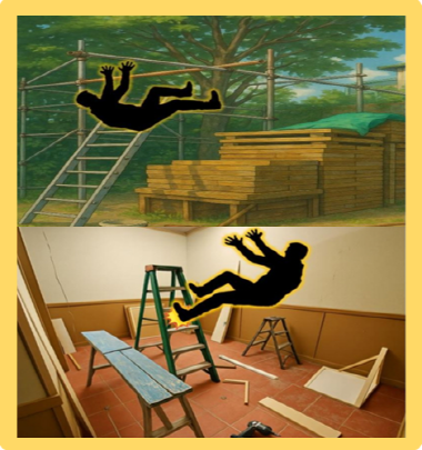 7. 말비계 위에서 천장면 정리작업 중 떨어짐 (사고사례)