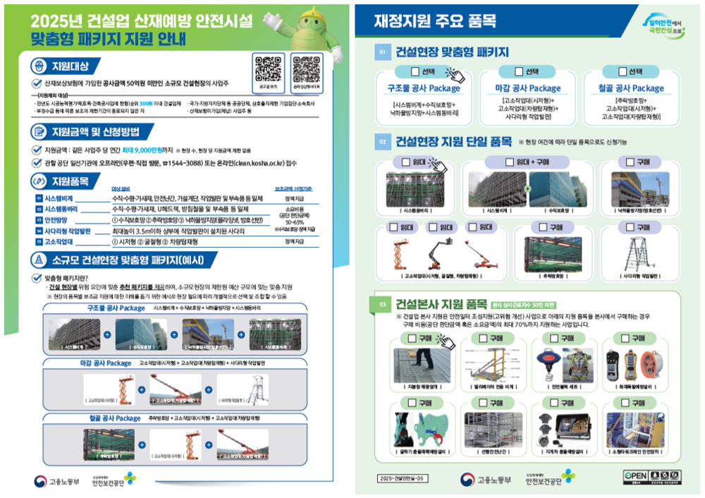 2025 건설업 산재예방 안전시설 맞춤형 패키지 지원 (수정 공고문) 작성자관리자 등록일 25-07-05 조회151회 본문 2025 건설업 산재예방 안전시설 맞춤형 패키지 지원 (수정 공고문) 첨부파일 [2025-건설안전실-35]_붙임 건설업 산재예방 안전시설 맞춤형 패키지 지원 안내 OPS.pdf (14.9M) 붙임_2025년도「안전일터_조성지원」사업_수정_공고문_통합본.pdf (2.4M) ‘임금직업포털 워크피디아(www.wagework.go.kr)’ 시스템 오픈 더 나은 내일을 위한 준비, 외국인근로자 고용허가 신청 서두르세요. 목록