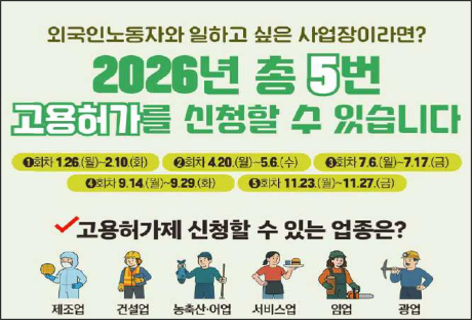 - 2026년 총 5회 외국인노동자 고용허가 신청․접수