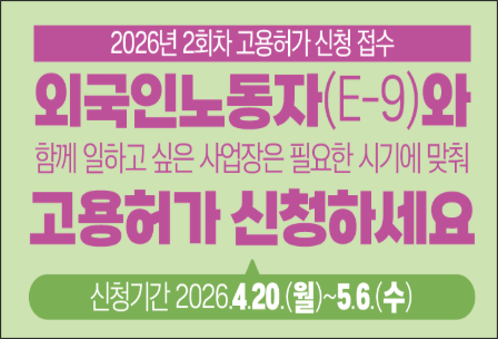 외국인노동자(E-9) 고용허가 신청하세요!”