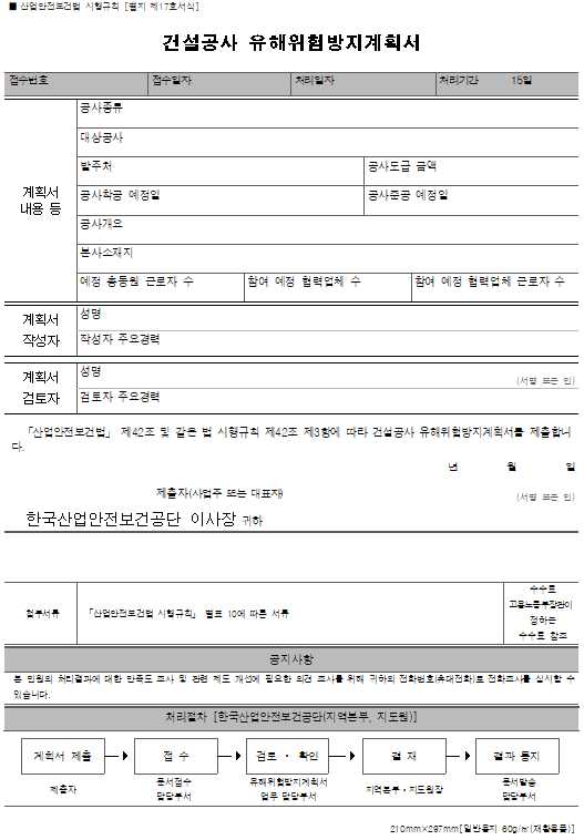 - [별지 제17호서식] 건설공사 유해위험방지계획서산업안전보건법 시행규칙.hwp (18.5K)