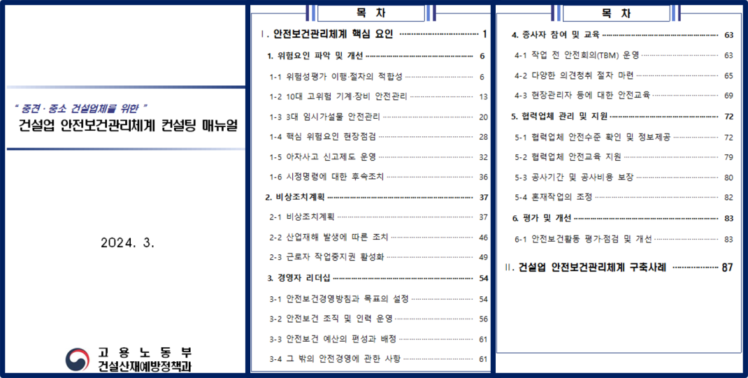 건설업 2024년 안전보건관리체계 컨설팅 매뉴얼 작성자관리자 등록일 25-11-25 조회99회 본문 건설업 2024년 안전보건관리체계 컨설팅 매뉴얼 첨부파일 건설업 2024년 안전보건관리체계 컨설팅 매뉴얼.hwp (24.6M) 노사협의회 운영 매뉴얼 및 각종 양식 위험성평가 관련 양식 목록