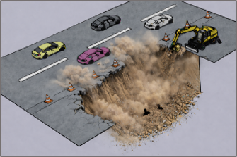 사고 당일 현장에서 편도 3차선 도로 중 1개 차로를 4미터 깊이로 굴착하여 하수관로를 설치하는 공사를 진행하던 중, 굴착 사면부가 무너지면서 노동자 2명이 토사에 매몰되는 사고(사망1, 부상1)가 발생했다.