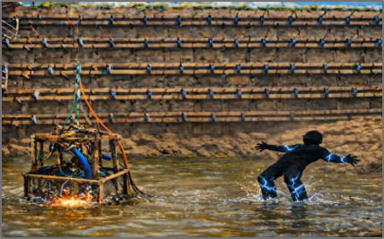 사고 당일 현장에서는 장마철 폭우로 물웅덩이가 형성되었고, 이를 제거하기 위해 수중양수기를 가동하던 과정에서 양수기의 작동 상태를 확인하던 노동자가 누설전류*에 노출되어 감전으로 중대한 부상을 입는 사고가 발생했다.