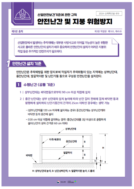 산업안전보건기준에 관한 규칙 - 안전난간 및 지붕 위험방지 작성자관리자 등록일 25-07-07 조회237회 본문 산업안전보건기준에 관한 규칙 - 안전난간 및 지붕 위험방지 첨부파일 [2024-교육혁신실-819] [기준규칙] 총칙_안전난간 및 지붕 위험방지.pdf (2.0M) 열사병 예방 3대 기본수칙 이행가이드 산업안전보건기준에 관한 규칙 - 추락에 의한 위험방지 목록