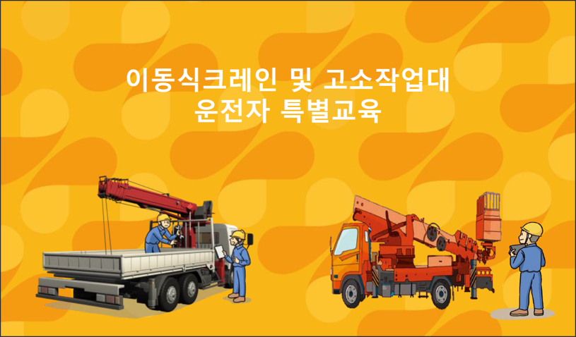 이동식크레인 및 고소작업대 운전자 특별교육 교안 작성자관리자 등록일 26-02-02 조회35회 본문 이동식크레인 및 고소작업대 운전자 특별교육 교안 첨부파일 이동식크레인 및 고소작업대 안전검사원 특별교육.pdf (22.8M) 안전보건 교육 실무길잡이(도정 및 제분업 / 비금속 광물제품 제조업) 고소작업대 작업 중 사망 사고 예방대책 목록