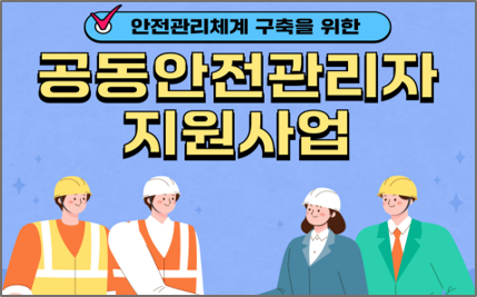 고용노동부(장관 김영훈)와 한국산업안전보건공단(이사장 김현중)은 「협·단체 공동안전관리 지원사업」에 참여할 사업주 단체를 1월 6일(화)부터 모집한다.