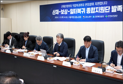 고용노동부(장관 김영훈)는 3월 12일(목), 서울지방고용노동청에서 산업재해보상 정책의 근본적 혁신을 위한 「산재-보상-일터복귀 종합지원단」 킥오프회의를 갖고 본격적인 활동에 들어갔다.