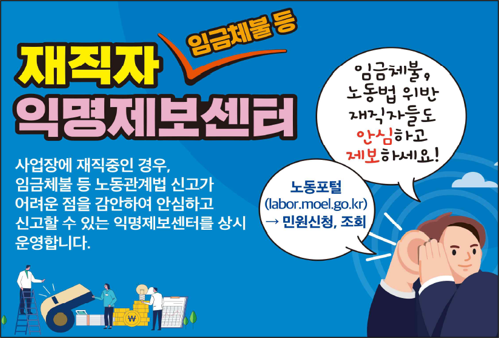 재직자의 경우 임금체불 등 노동관계법 위반이 있어도 신분상 불이익 우려로 신고가 어려운 점을 고려해, ’24년부터 익명제보 감독을 실시하고 있다.