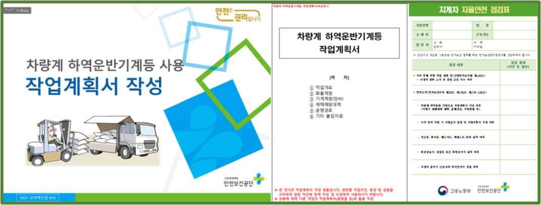 지게차 작업계획서 작성 교안과 샘플 및 자율안전 점검표
