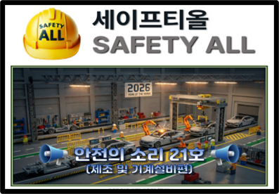 안전의 소리 21호 (기계 및 기계설비편) 작성자관리자 등록일 26-01-13 조회19회 본문 안전의 소리 21호 (기계 및 기계설비편) 입니다. 사진을 클릭해 주세요. 안전의 소리 62호 안전의 소리 61호 목록