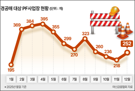 여신금융협회에 따르면 지난달 말 기준 경공매 대상 PF 사업장은 252곳으로, 지난해 3월 최고치(395곳) 대비 약 36% 감소했다. 정부는 지난해 1월부터 금융협회 홈페이지를 통해 매각 추진 사업장 현황을 공개하며 정리 작업을 지원해왔다. 전체 PF 익스포저는 3월 말 190조8000억원에서 9월 말 177조9000억원으로 줄었고, PF대출 연체율도 같은 기간 4.49%에서 4.24%로 소폭 개선됐다.